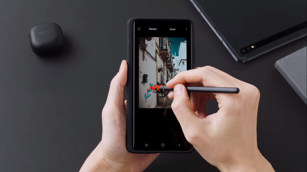 Máy vẫn giữ thiết kế màn hình Infinity-O với camera trước nằm trong màn hình cảm ứng. Mặt trước của máy được bảo vệ bởi kính cường lực Gorilla Glass Victus - kính cường lực cứng nhất trên thị trường hiện nay. Khung của máy được làm từ nhôm nhằm giảm trọng lượng và mặt sau được trang bị kính Gorilla Glass 7. Ngoài ra, máy còn được trang bị khả năng chống nước IP68.