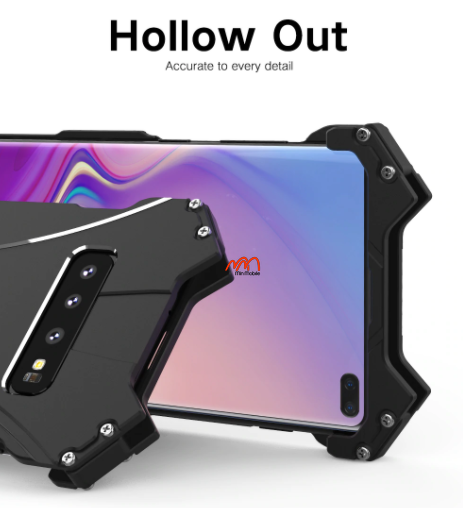 Ốp lưng Samsung Galaxy S10e kim loại batman được cấu tạo từ 2 phần riêng biệt, kẹp lại với nhau tạo thành 1 khung kim loại. Mặt trước là 2 thanh nhôm ở 2 đầu cố định điện thoại bằng 2 con ốc nhỏ, phần nắp lưng là toàn bộ mặt nhôm cắt CNC sáng bóng. Hãng R-Just thiết kế thêm những khe hở theo hình chữ V nhằm mang đến khả năng tản nhiệt, thông thoáng cho điện thoại trong quá trình sử dụng.