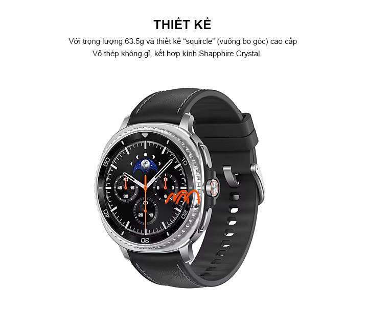 Với trọng lượng 63.5g và thiết kế “squircle” (vuông bo góc) cao cấp, Samsung Galaxy Watch 8 Classic được tối ưu để đeo thoải mái cả ngày. Vỏ thép không gỉ kết hợp kính Sapphire Crystal mang lại độ bền vượt trội, đạt chuẩn 5ATM + IP68 và MIL-STD-810H, phù hợp cho các hoạt động ngoài trời hoặc dưới nước.